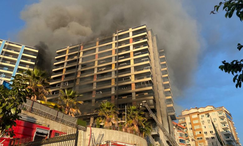Antalya’nın Alanya ilçesindeki 12 katlı bir otel inşaatında yangın çıktı.