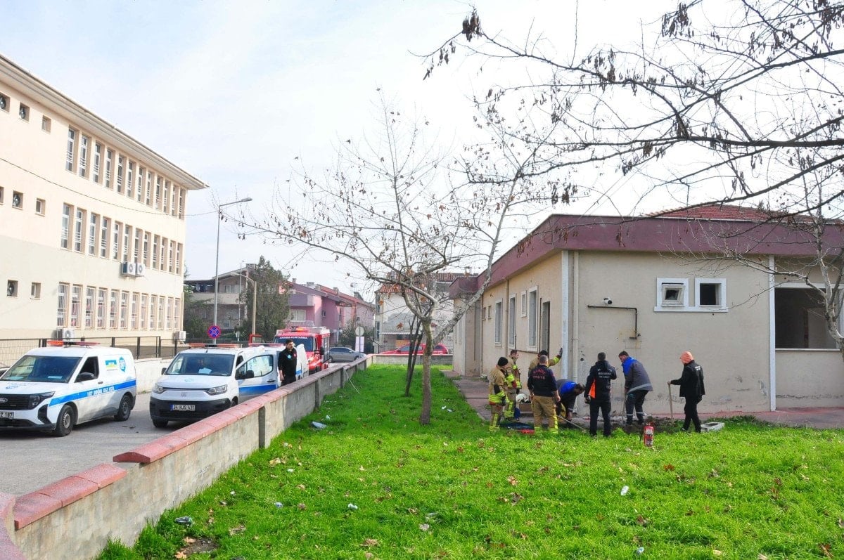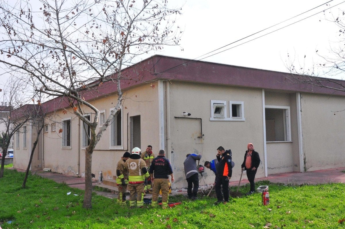 Manisa’nın Yunusemre ilçesi Güzelyurt Mahallesi’ndeki 23 Nisan İlkokulu’nun yanında bulunan ve kullanılmayan 112 Acil Sıhhat İstasyonu’nda bir hizmetli, bina etrafından gelen sesi fark ederek durumu yetkililere bildirdi.